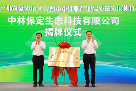 会上,余红辉与保定市委书记党晓龙共同为新组建的中林保定生态科技有限公司揭牌。公司未来将以央地合作模式深耕国家储备林开发、木本油料示范区建设、良种繁育中心生产,文冠果为主经济林种植,全域生态碳资产管理等项目的实施。在18个县(市、区)发展文冠果规模化种植,并参与建设年产油脂5万吨、预计年产值150亿元的现代化园区,打造集文冠果等木本油料精深加工、以神经酸提取高附加值产品为核心的产业园区,为保定地区推动全国领先的千亿级木本油料产业高质量发展,助力乡村振兴建设。