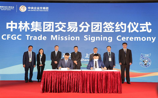 11月5日至10日,第五届中国国际进口博览会在上海中国国家会展中心举办,林产工业公司作为中林集团交易分团成员参加进博会并进行现场签约,签约总金额达1.8亿美元。