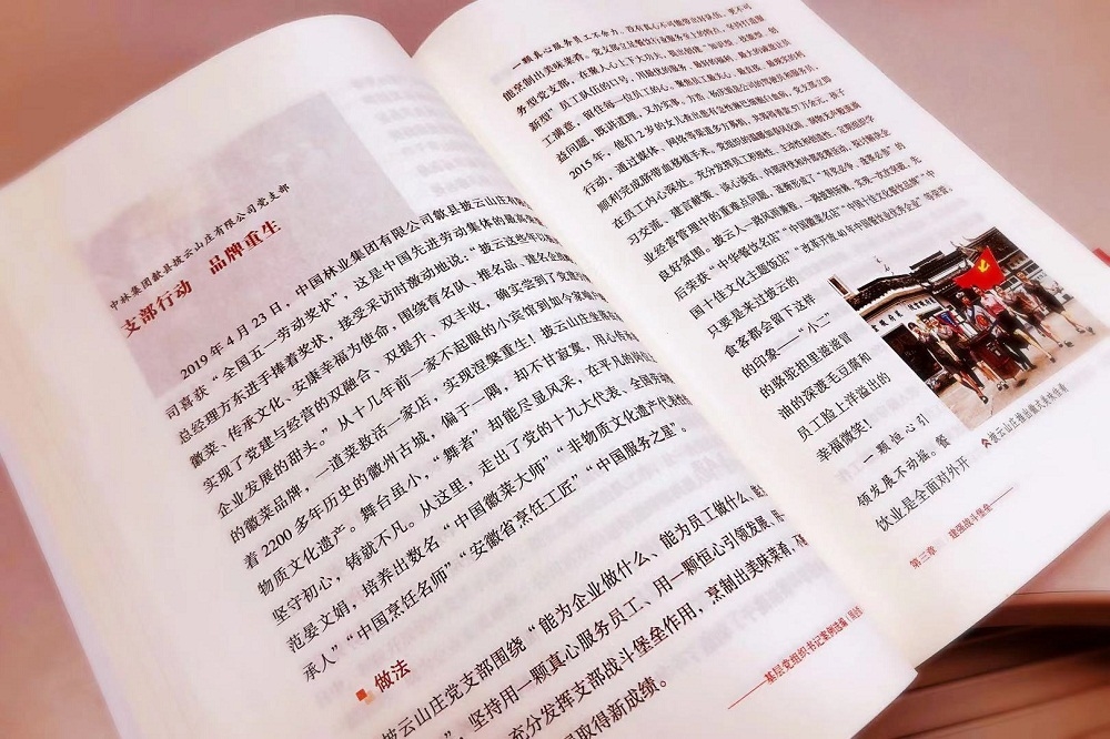 近日,中央组织部和国务院国资委组织编写的全国党员教育培训教材《基层党组织书记案例选编(国企版)》一书由党建读物出版社正式出版发行。集团公司组织撰写并推荐的《中林集团歙县披云山庄有限公司党支部:支部行动 品牌重生》经验做法成功入选该书,成为中组部基层党组织书记培训教材新的组成部分,中林集团基层党建经验走向全国。