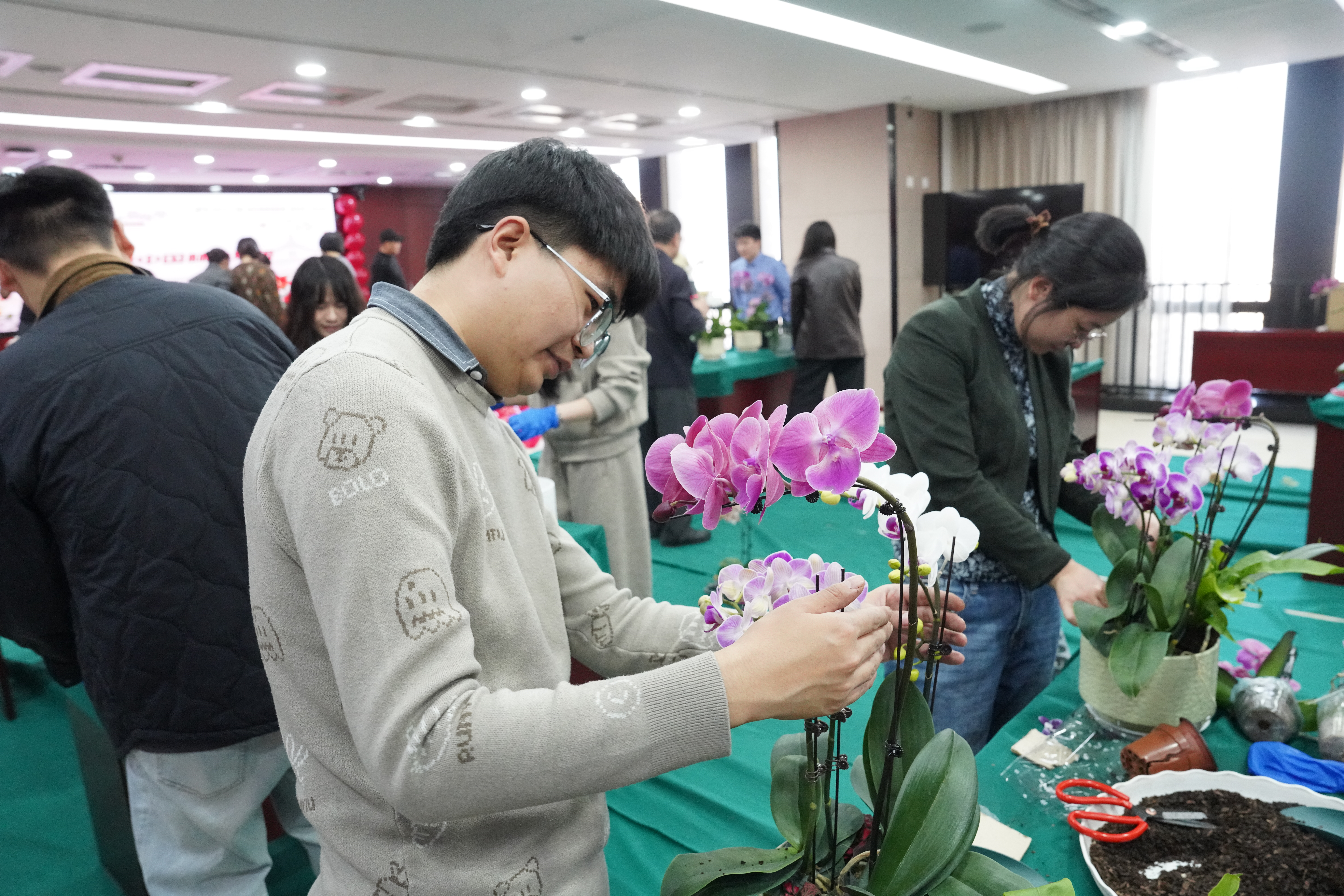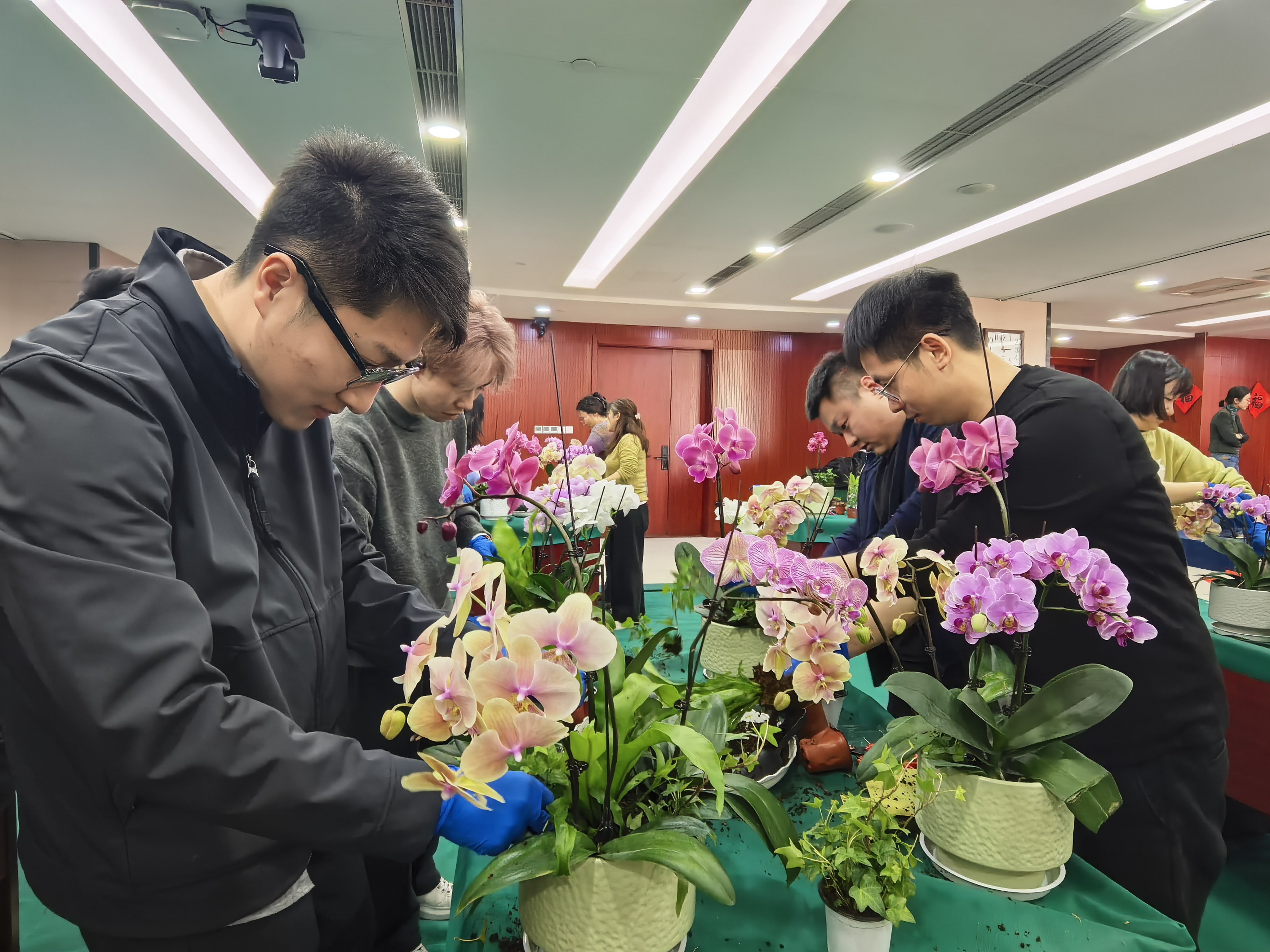 年宵花盆栽制作体验课上,花艺老师详细讲解蝴蝶兰的生长习性、组盆技巧及养护方式,大家巧手穿梭间,一盆盆兼具美感与新意的组盆作品次第呈现,花香与笑语交织,其乐融融。