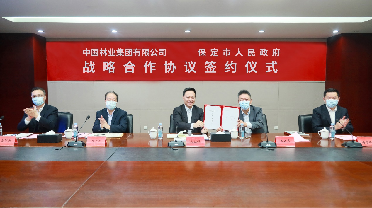 11月1日,中国林业集团有限公司与保定市人民政府通过视频方式签署战略合作协议。中林集团党委书记、董事长余红辉,保定市委书记党晓龙出席并见证签约。保定市委副书记、市长闫继红主持活动仪式,市委副书记商黎兵