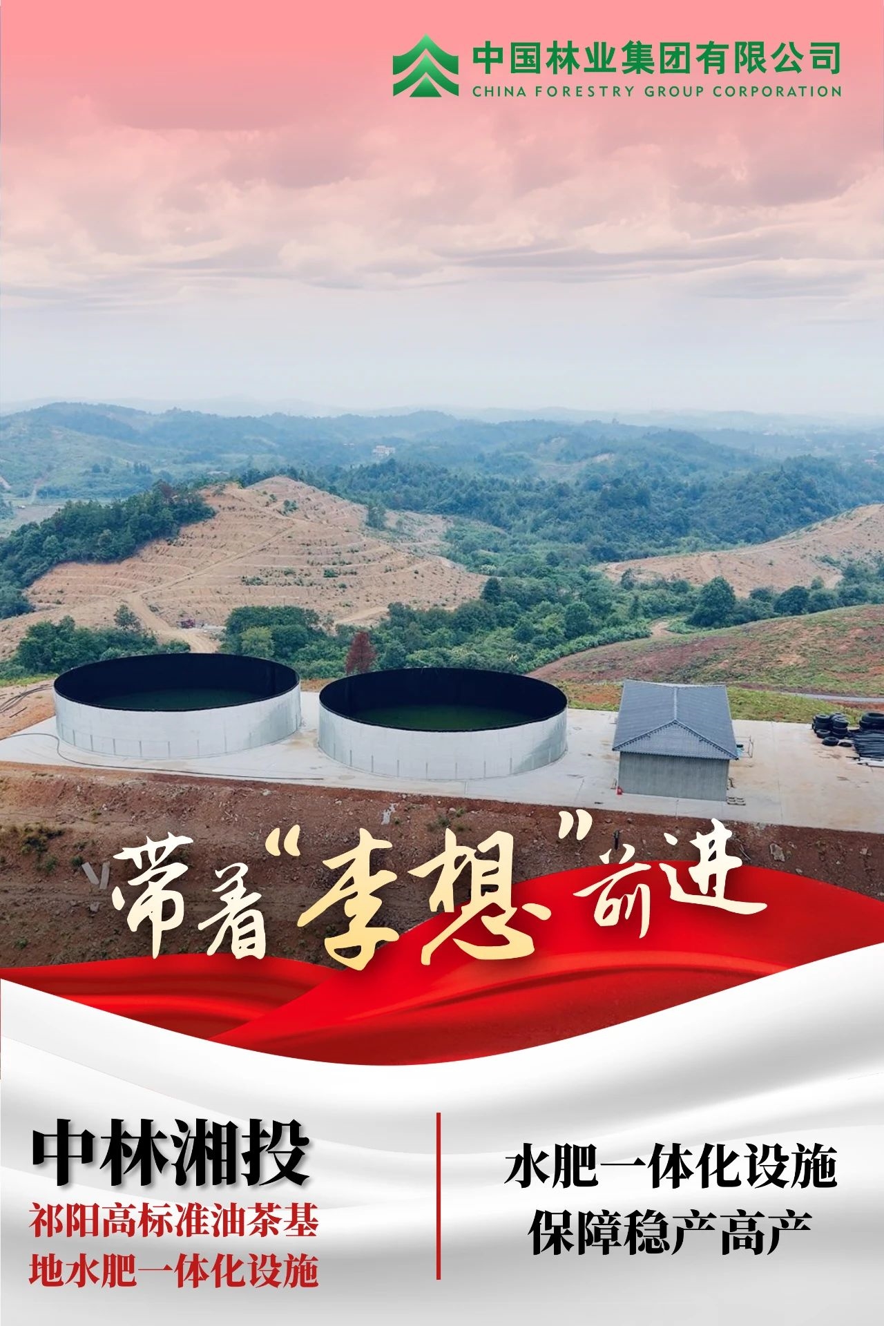 中林湘投祁阳高标准油茶基地项目,是中林集团首个实施启动的油茶项目,项目配备了完善的水肥一体化设施,为基地油茶生长提供稳定可靠的水源及肥料,该项目正逐步实现标准化、机械化及智慧化的建设目标,为油茶高产稳产提供了示范样板。