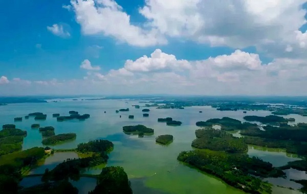 银湖三千岛,风临起波涛,这里是湛江的“千岛湖”——鹤地水库涵养林。初秋时节,漫步鹤地水库岸边,放眼望去,一座座绿色的小山丘(水源涵养林),山水相接,水天相连,近看水面,波光浩淼,鸟飞鱼嬉,一幅和谐宁静