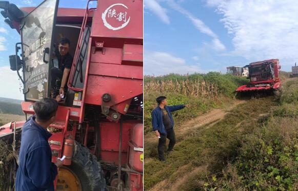 中林果业(陕西)有限公司所有人坚守岗位,公司员工、收割机手、铲车司机等一线职工冒雨在未收割区域开展安全值班巡查。