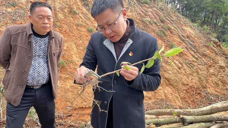 支部强化学用结合、以学致用,充分发挥党支部战斗堡垒和党员先锋模范作用,营造了主题教育“笃信笃行、奋力拼搏”的良好氛围。为抢抓千亩甜茶基地建设工期,保证采伐效果,支部班子带头放弃节日休假,带着党员、职工到东山林场按照松材线虫病防治与马尾松林改培试点项目的技术标准进行号木。每天组织上百人的施工队伍,起早贪黑地投入到清林、采伐、处理剩余物、整地打窝的工作中,终于按期保质保量完成了采伐任务。为确保基地种植进度和树苗存活率,党员干部全员扎根苗地,抢抓雨后最佳种植期,于短短一周内一株一株地检查苗木的根须,手把手地栽种下4万株甜茶苗,提前完成栽植任务。
