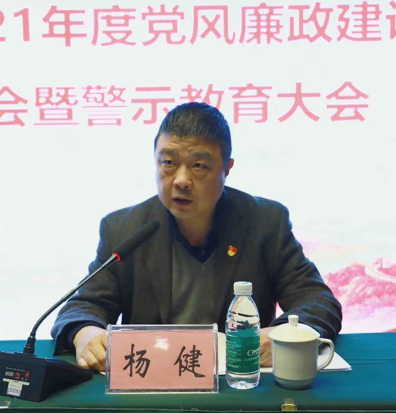 会上,传达学习了《党的十九届六中全会精神》、《十九届中央纪委五次全会精神》,组织观看党风廉政警示教育视频,组织各下属公司签订《2022年度党风廉政建设责任书》。杨健作2021年党风廉政建设和反腐败工作报告。
