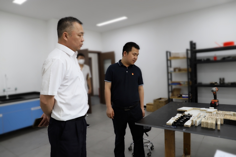 图:考察实验室建设 当天,罗廉首先来到中林科技检验检测中心实验室,详细了解实验室大气候箱、微机控制托盘压力试验机、微机控制大跨度人造板试验机、VOC环境测试舱等设施设备情况,以及检测中心的服务项目情况。 随后,围绕主题教育“学思想、强党性、重实践、建新功”这一总要求,结合如何破解中林科技改革发展难题,罗廉从“提高站位,充分认识学习贯彻习近平新时代中国特色社会主义思想主题教育的重大意义”“坚定信心,用习近平新时代中国特色社会主义思想定向领航”“着眼未来,用习近平新时代中国特色社会主义思想推动实践”三个方面,为中林科技干部职工讲授党课。罗廉指出,中林科技公司全体干部职工要统一思想、坚定信心,紧紧围绕中林集团“两个目标”“四个定位”战略布局,聚焦重庆国储林项目建设这一主责主业,围绕储备林建设推动一二三产业融合发展,用习近平新时代中国特色社会主义思想推动实践,在夯实优势产业、强化技术支撑、转变经营思路方面下苦功夫,“一家人一盘棋一条心”地打造全国储备林建设样板。在这个过程中,领导干部要发挥带头作用,党员青年要发挥突击示范作用,全体职工要发挥主力军作用,将个人的发展和国家、企业的发展紧紧联系在一起,在平凡的岗位上履职尽责、贡献力量。