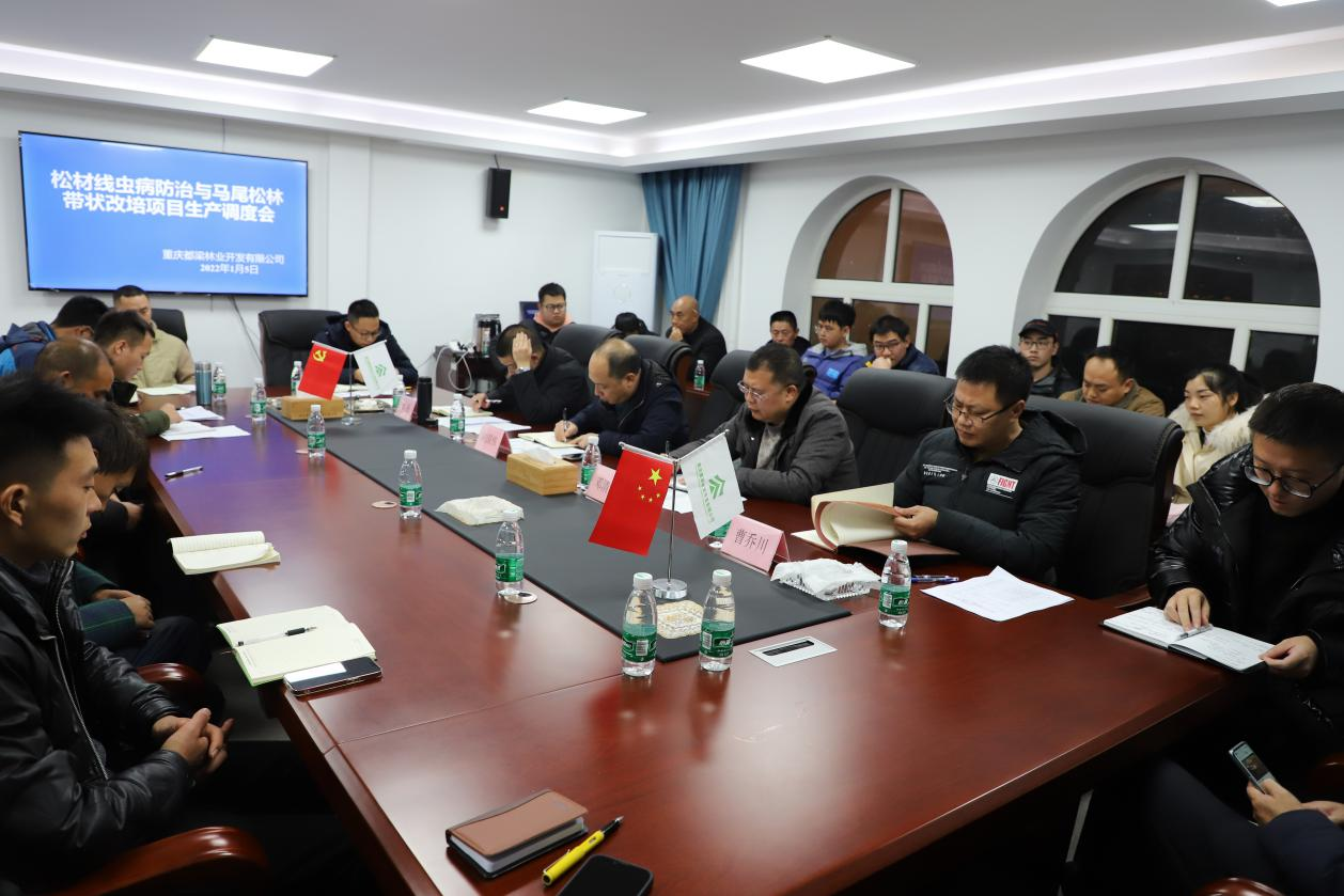 1月5日,2022年松材线虫病防治与马尾松林带状改培林带状改培工作调度会在梁平召开。会议由都梁公司总经理邓清洪主持,重庆林投公司副总经理、董事向国伟出席会议。
