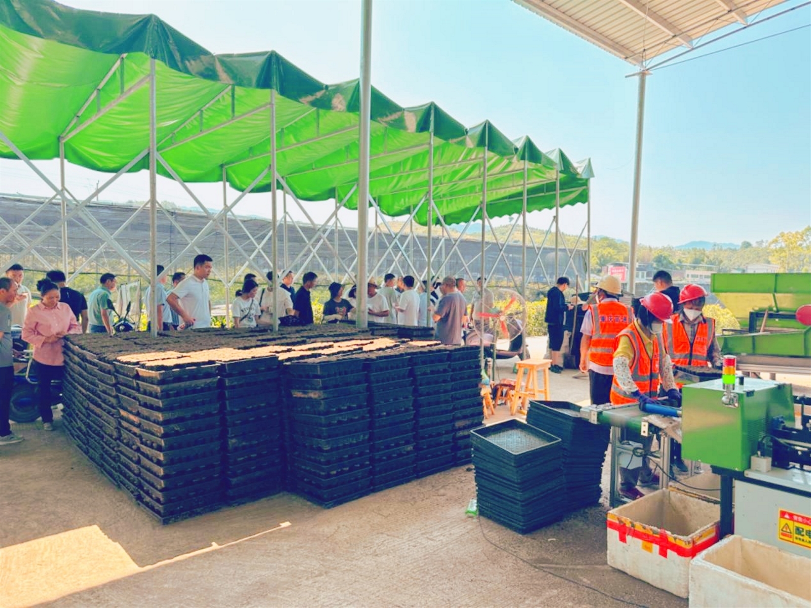 为提高各保障性苗圃基地育苗质量,强化育苗技术,提升保障性苗圃基地的保障供给能力,8月23日,重庆林投公司召开2024年度种苗生产现场培训会。重庆林投公司副总经理黄珍富到会提出工作要求。 在梁平区林业保障性苗圃基地,路意公司副总经理王强介绍梁平林业保障性苗圃基地规划及建设现状。随后,永川区国有林场林业高级工程师何林对容器苗育苗设施配置、芽苗培育、轻质无纺布育苗等方面展开实用性技术培训。