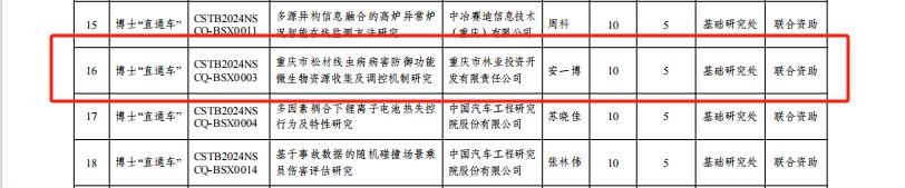 重庆市博士“直通车”项目由重庆市科技局主办,以培养“重庆英才•科技创新领军人才”和“重庆英才•创新创业示范团队”为目标,支持来(留)渝博士瞄准专业领域的科技前沿和围绕全市经济社会发展中的前沿关键科学技术问题,对接市场需求和围绕战略性新兴产业发展需要,发挥示范和引领作用,研究开发具有创新性、成熟度、稳定性、可靠性的新技术、新产品。 此次立项的重庆市博士“直通车”项目共19项,涉及电力、汽车、生物、电子产品制造、军工等9个行业,重庆林投公司“重庆市松材线虫病病害防御功能微生物资源收集及调控机制研究”项目作为唯一的林业行业项目成功立项,是对重庆林投公司科研工作的肯定,也是公司在促进产学研合作、加速科技成果转化方面所取得成效的体现。开展病原松材线虫的防治研究是森林保护工作中长期坚持的严峻课题之一,松材线虫病害严重威胁着松林的健康和生态安全,给林业生产和生态环境带来了巨大挑战。本项目围绕“重庆市提高松树抗松材线虫病能力的微生物资源筛选、功能微生物诱导寄主松树抗病的分子调控机制”等科学问题展开研究,研究成果将为寻找松材线虫病防治方法提供新的思路和理论基础,以科技赋能林业产业,保障国家储备林建设顺利推进。 相关信息