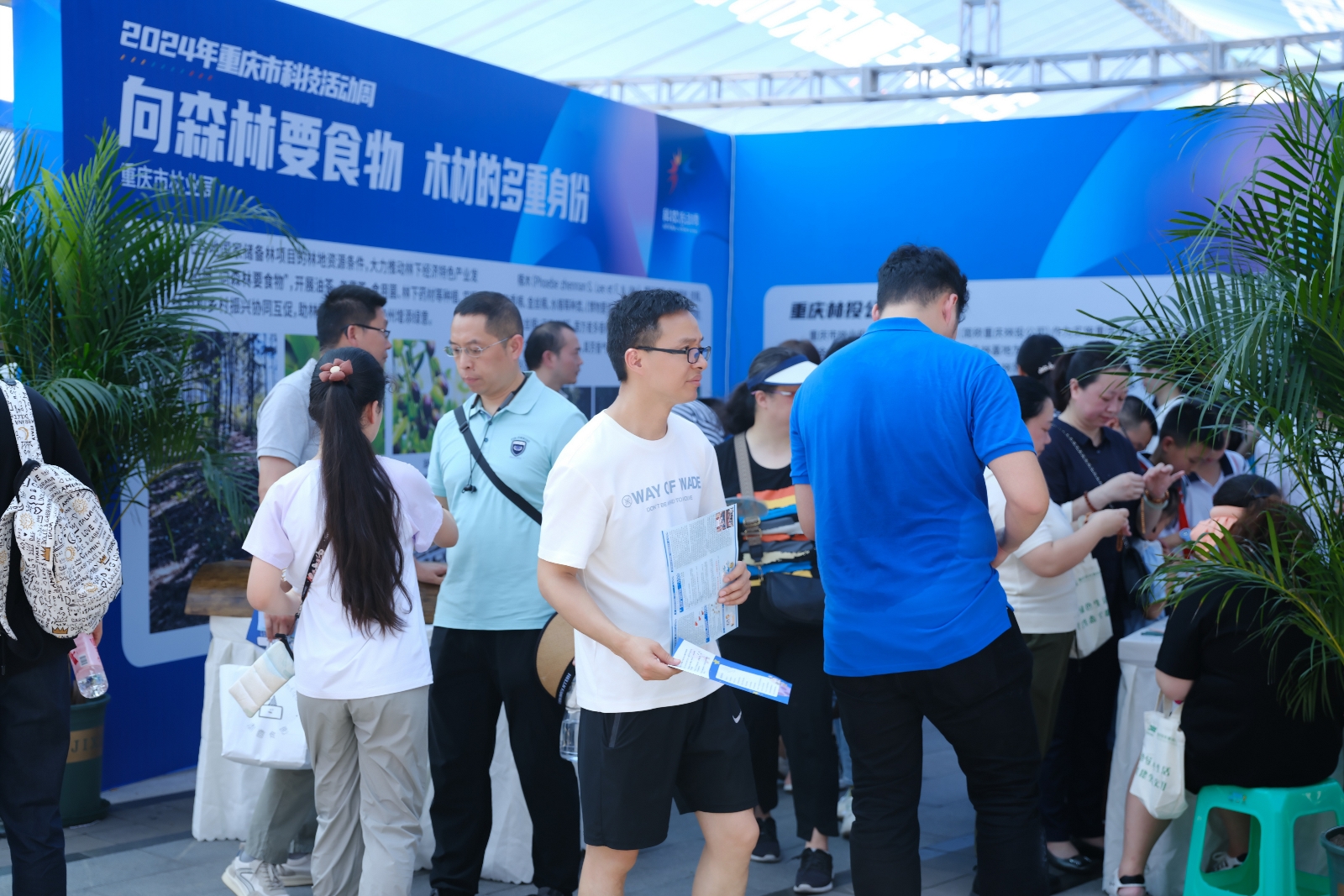 5月25日,2024年重庆市科技活动周开幕。37°的高温天气没有阻挡住重庆市民的观展热情,重庆林投公司呈现的“国储林点亮品质生活”主题展受到强势围观。重庆林投公司总经理向国伟率公司员工现场向市民介绍重庆国储林项目、科普林业科技知识。