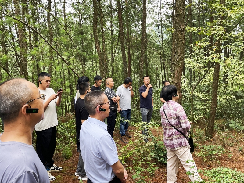 图:现场培训 培训会分为现场培训和理论学习两个环节。在现场培训中,参训人员参观了梁平云龙苗圃基地,来自永川区国有林场的种苗专家何林进行了详细讲解,让学员们深入了解从育苗到出圃的相关技术要点。重庆林投公司生产部部长韦丹、森发部副部长陶志先在营林现场分别就森林改培的要求与原则和森林的设计原理进行了实例教学。