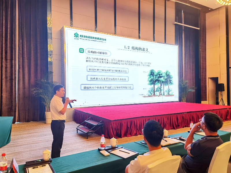 图:现场培训 在理论学习中,来自国家林草局西北规划院的专家贾东瑾,重庆林投公司总工程师方文以及陶志先、陈炯先、张鹏鹏等专家和技术人员分别就林业监理、结构化森林经营、营造林设计、物料管理和验收各个关键环节进行了重点解析,为参会人员进行了全面深入的秋季营林生产理论知识宣讲。