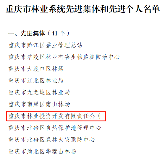 重庆林投公司荣获重庆市林业系统先进集体、先进个人荣誉称号 |