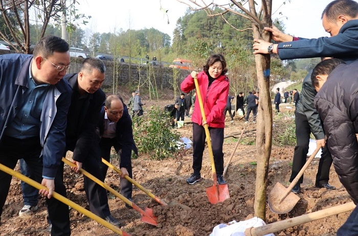 3月12日,重庆市现代农业综合示范工程林业示范基地作为全市54个义务植树基地之一,迎来了南川区2021年义务植树活动,南川区区委书记丁中平、区人大主席康纪强等四大家领导及区属各部门以及市林投公司副总经理罗廉、向国伟参加了植树活动。