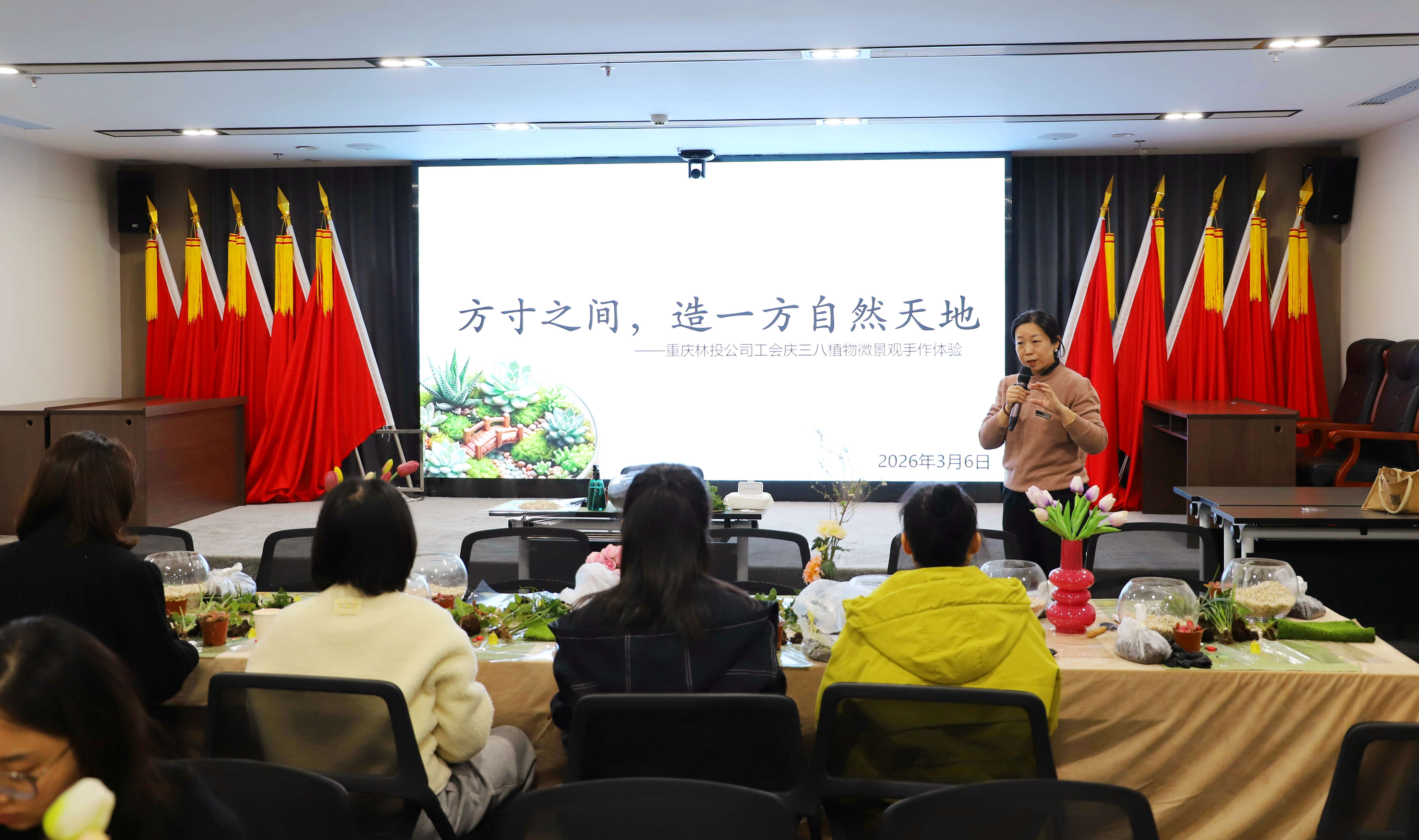 为庆祝“三八”国际劳动妇女节,丰富女职工精神文化生活,3月6日,重庆林投公司工会组织开展以“方寸之间,造一方自然天地”为主题的植物微景观手作体验活动。
