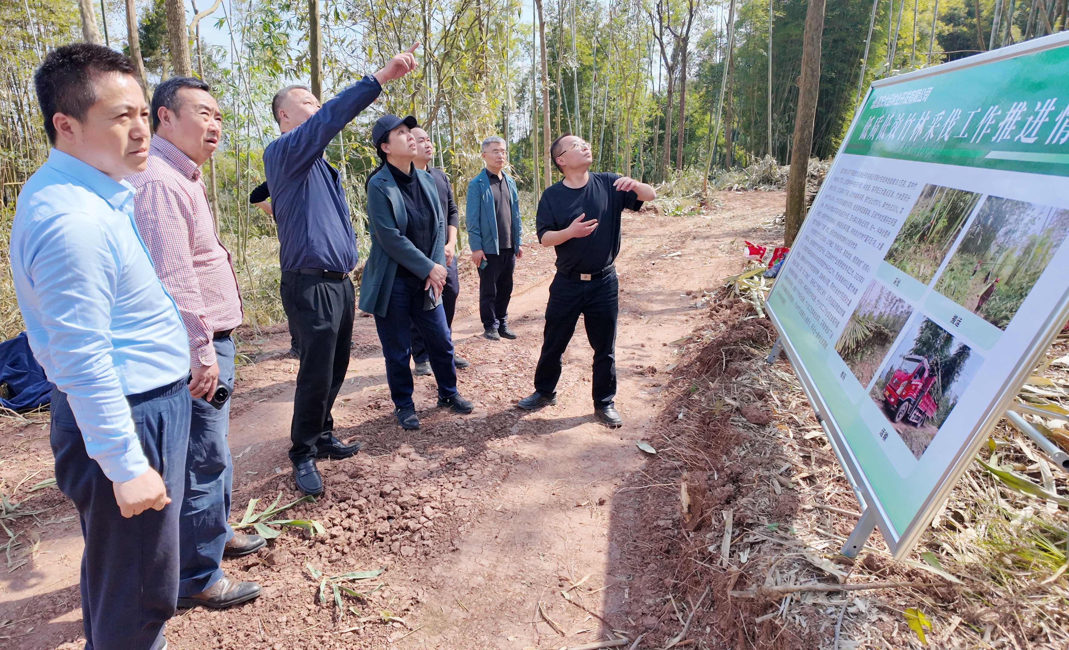 3月11日,调研组来到璧山区青杠街道以及大足区三驱镇、高升镇等地,察看项目建设及产业发展成效。在“山珍百味园”林下种植示范基地和木材高值化利用示范点,实地了解深化集体林权制度改革示范片最新成果和运营模式。走进桉树、竹林培育基地和竹片加工点现场,详细了解大足区国储林项目建设及桉树、竹林等短周期品种经营发展情况。调研组肯定项目建设中通过“中长周期+短周期”统筹结合方式平衡储备林建设全周期收益不平衡的具体做法,并对森林多功能一体化经营过程中出现的共性问题提出指导性意见。