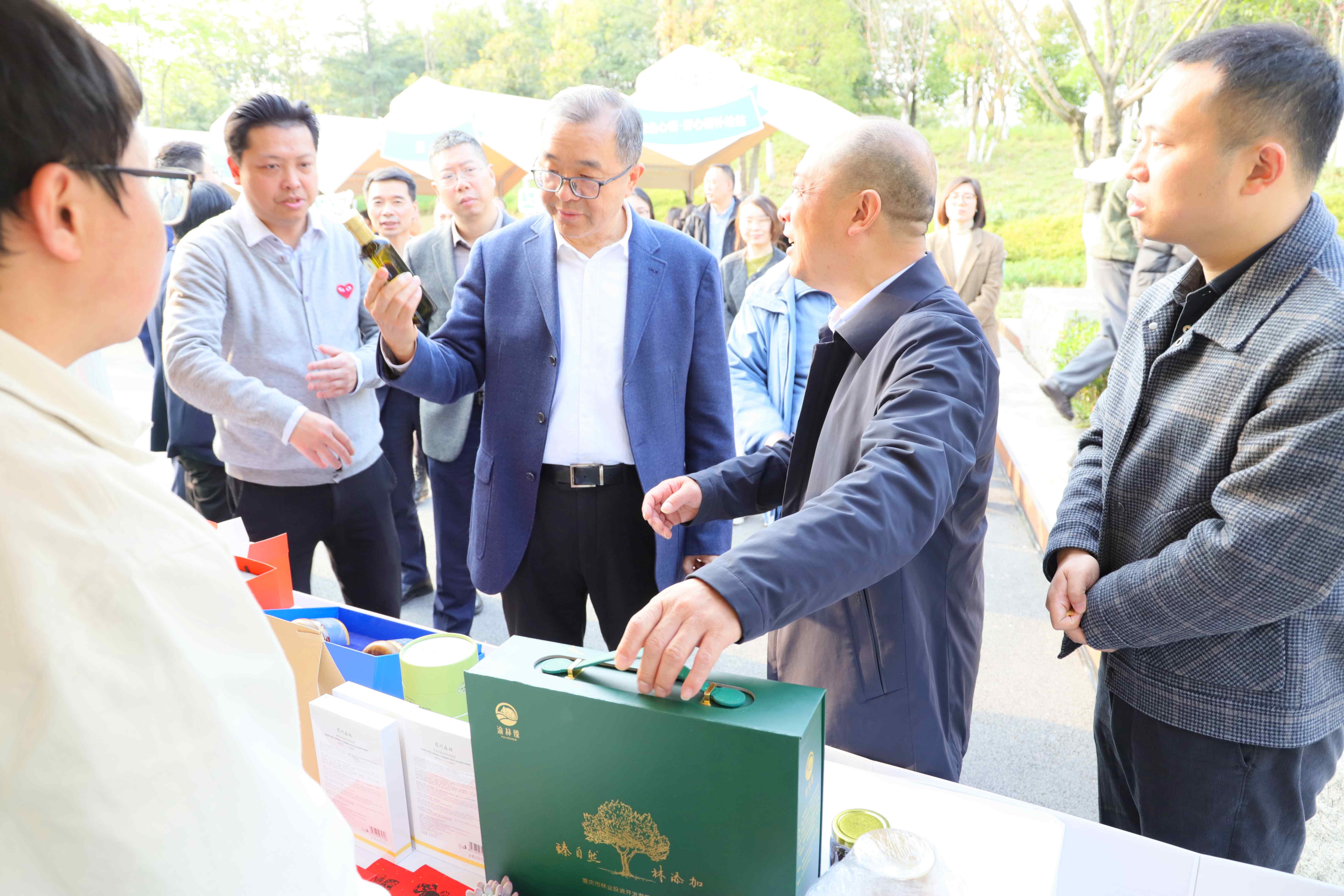 市规划自然资源局党组书记、局长,市林业局党组书记、局长曹春华来到公司展台前,听取公司林下产品发展及“渝林臻”产品电商平台介绍,详细了解橄榄油等产品销售情况。他指出,要持续推动技术创新与数智化升级,培育林业新质生产力,同步推进适销对路产品研发、线上线下产品销售,不断满足消费需求,持续赢得市场口碑。