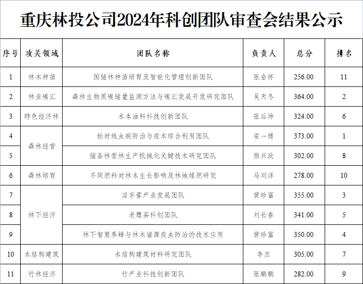 2024年5月24日召开科创团队审查会,开展审查工作,经过反复统计、核查,现将重庆林投公司2024年科创团队审查会结果,予以公示。 一、公示期 2024年6月4日-2024年6月9日 二、受理机构及联系方式 受理地点:重庆市渝北区余溪路158号春玺苑写字楼3栋 联系方式:王老师 023-81039572 电子邮箱:cqltkccyfzb@cfgc.cn 三、公示要求 1. 如对公示内容有异议,请以书面、署名形式反映。 2. 反映人必须用真实姓名,反映情况要实事求是,真实、具体、敢于负责。不允许借机捏造事实、泄愤报复或有意诬陷,一经查实,予以严肃处理。 3. 受理机构对反映人员及反映情况严格保密。