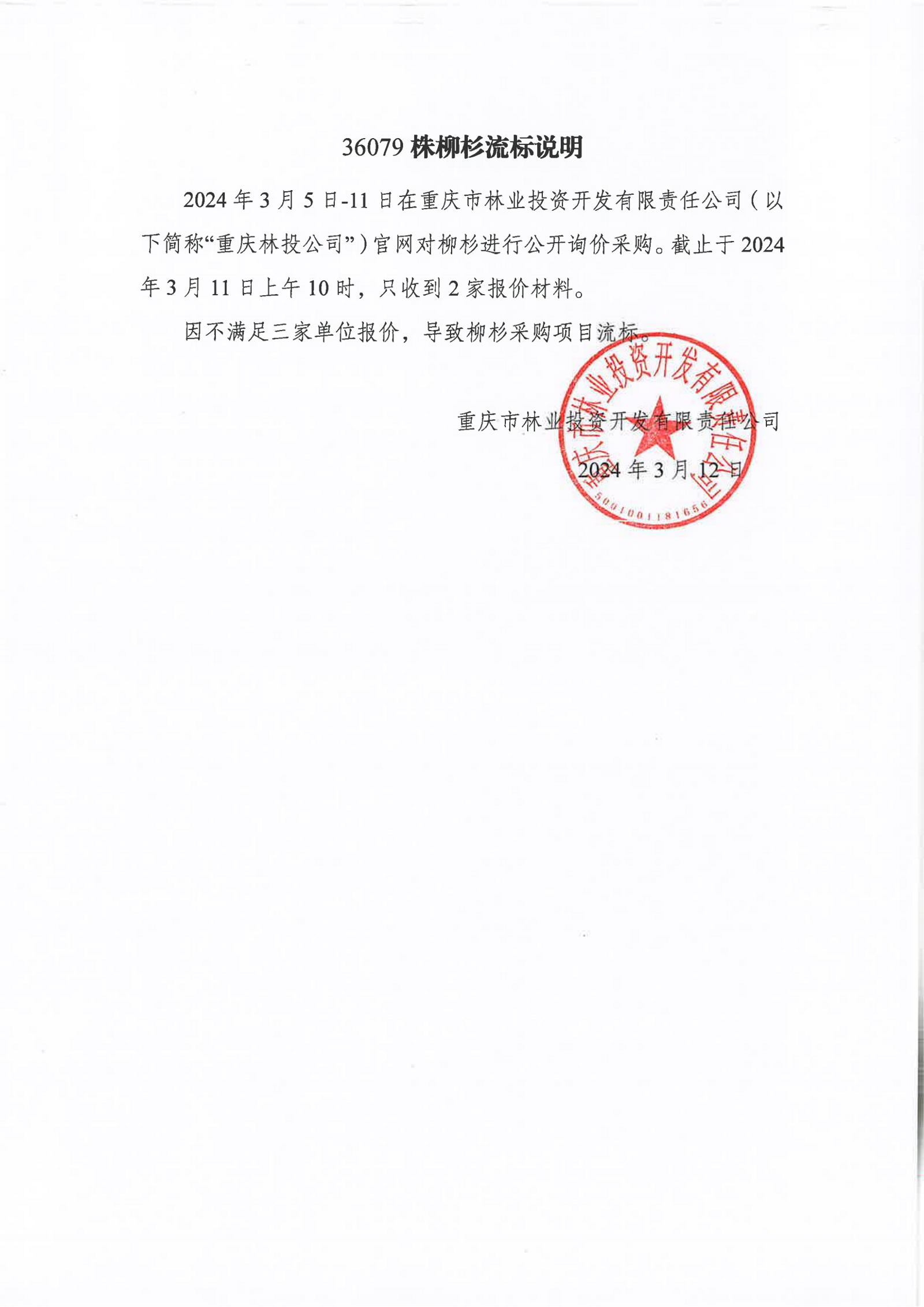 36079株柳杉采购流标说明