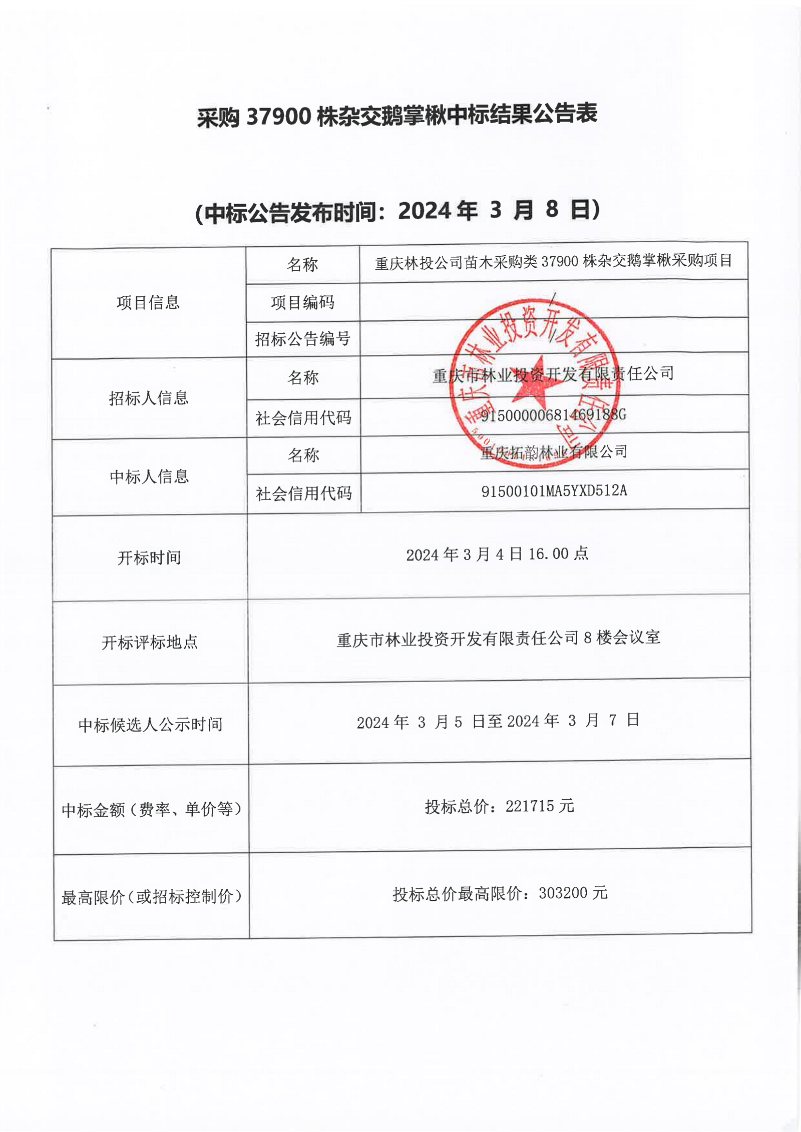37900株杂交鹅掌楸中标结果公告