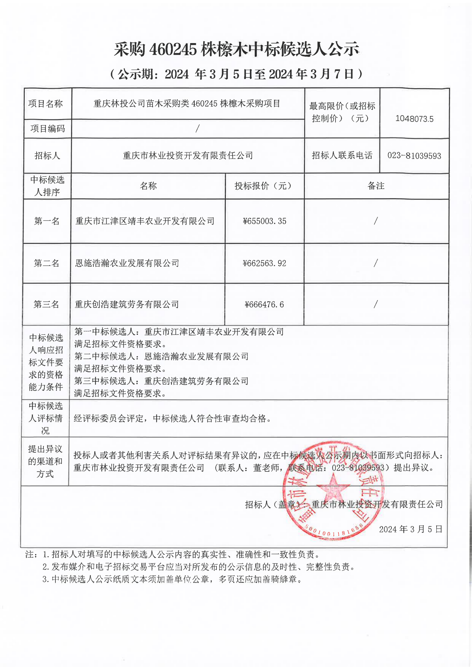460245株檫木候选人公示