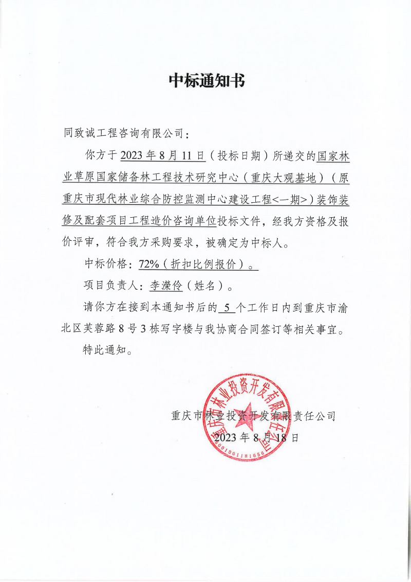 国家林业草原国家储备林工程技术研究中心(重庆大观基地)(原重庆市现代林业综合防控监测中心建设工程一期)装饰装修及配套项目工程造价咨询单位