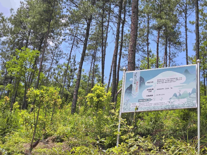 一、精准施策,释放生态经济价值 巫溪县蒲莲镇兴鹿村位于秦巴山区,森林资源丰富,但部分马尾松纯林因树种单一、经济效益低等问题亟需提质升级。在国家储备林建设政策的引领下,按照巫溪县政府与重庆林投公司签署的“共同推进巫溪县老鹰茶产业项目建设战略合作协议”,巫溪公司在蒲莲镇兴鹿村实施“巫溪县国家储备林马尾松改造培育老鹰茶试点项目”。该项目创新采用“马尾松+老鹰茶”复合经营模式,通过疏伐、补植等技术手段,优化林分结构,在林下及林窗空间规模化种植具有市场潜力的乡土树种——老鹰茶(学名:毛豹皮樟),助力巫溪老鹰茶产业发展。