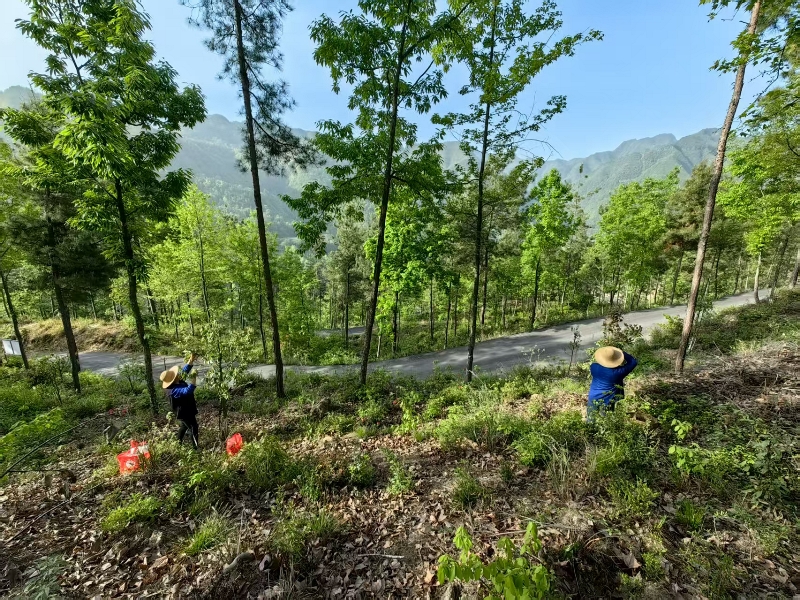 三、延链强链,助力产业规模化发展 “初产成功验证了马尾松林改培技术的可行性,也让我们对‘林下生金’更有信心。”巫溪公司相关负责人表示。项目实施过程中,通过“政府引导+企业实施+农户参与”机制,组织专家团队全程提供技术指导,由重庆林投公司出资、巫溪公司承建和运营的老鹰茶育苗基地应运而生,同时老鹰茶种植示范片区、茶文旅研学基地也将相应发展,形成老鹰茶产业全链条。目前,项目已带动周边300余户林农参与务工,人均年增收预计超8000元,生态红利正加速转化为富民实效。