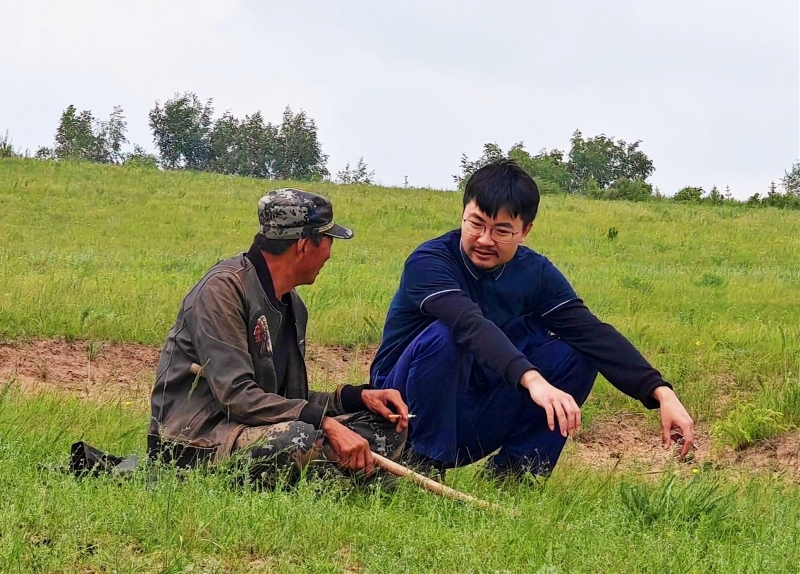 赵一帆前期负责项目设计对接工作。到现场后,他聚焦项目“5.15”顺利开工目标,冒着冬季零下20度的严寒,顶着刺骨的寒风实地踏勘,最后在3月28日确定了项目治理范围,从进场到确定治理范围用时35天。在划选项目用地的同时,同步准备社会稳定性评价备案、项目地块落实框架协议、可行性研究报告初稿等各类要件,团队以对项目开工目标的强烈使命感与高度责任心,高效推动各项要件落地,最终比开工路线图计划提前完成了可行性研究报告审批工作。 这一串数字是团队所有人团结协作的结果,是关键时刻能够顶得上去的担当,为荣誉而战的决心。这为项目能够顺利开工并完成国家下达的关键节点目标打下了坚实的基础。 三、精益求精,高质量推动项目建设 从“国储林”转向“治沙”,从南方到北方,重庆林投国储林青年突击队创新运用重庆国储林项目建设积淀的实践经验、专业技术,与当地实际相结合推动项目建设。为克服技术难题,刘杨利用各类资源,主动拓宽各类渠道,开展行业调研、向企业高校学习、找院士专家研讨、向地方“土专家”请教、自发试验探索。经过一年多的摸索,已经基本了解了草原沙地的演变过程,掌握了云杉乔木种植关键技术、锦鸡儿灌木的种植技巧、黄柳成活的关键环节、草种出苗的核心因素。刘杨和技术团队专门设计了两类典型地貌13种治理措施的治理试验区,探索适合浑善达克沙地的治沙措施,对浑善达克典型地貌开展不同措施与“乔灌草”组合搭配的治理,为后续治沙工作总结经验。