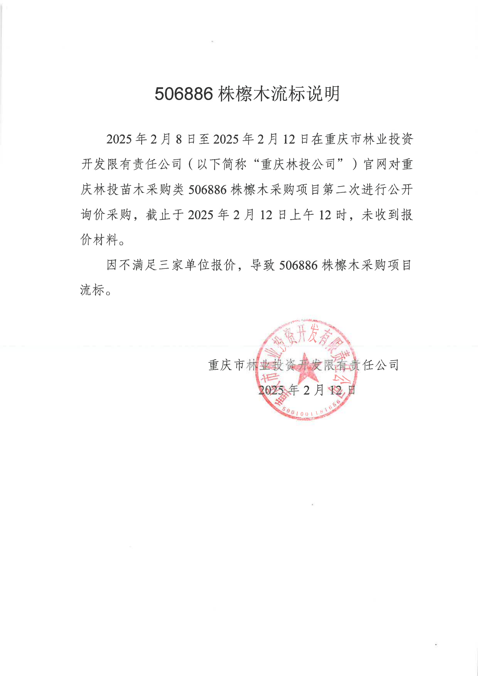 重庆林投苗木采购类506886株檫木采购项目第二次流标公告
