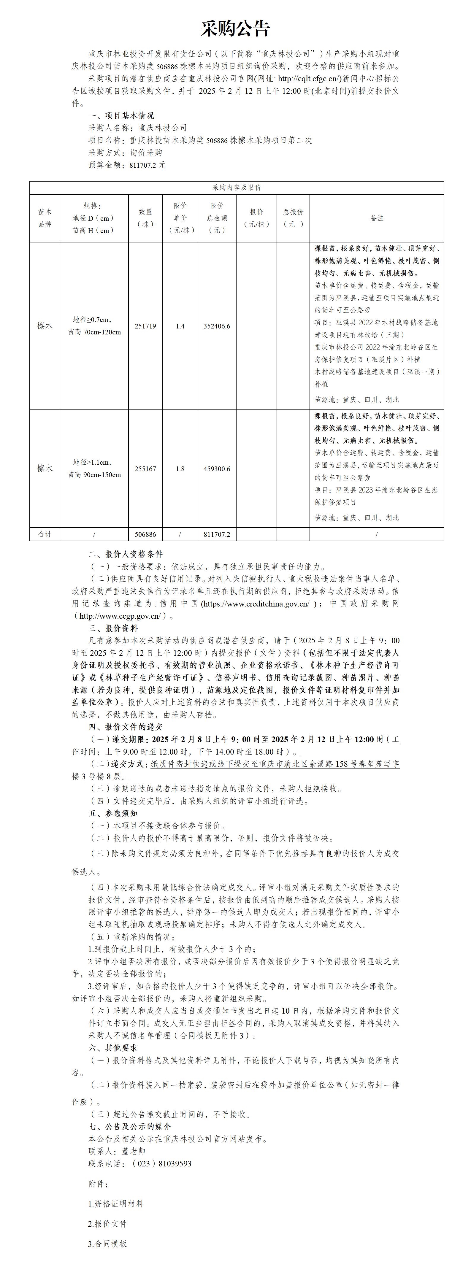 重庆林投苗木采购类506886株檫木采购项目第二次采购公告