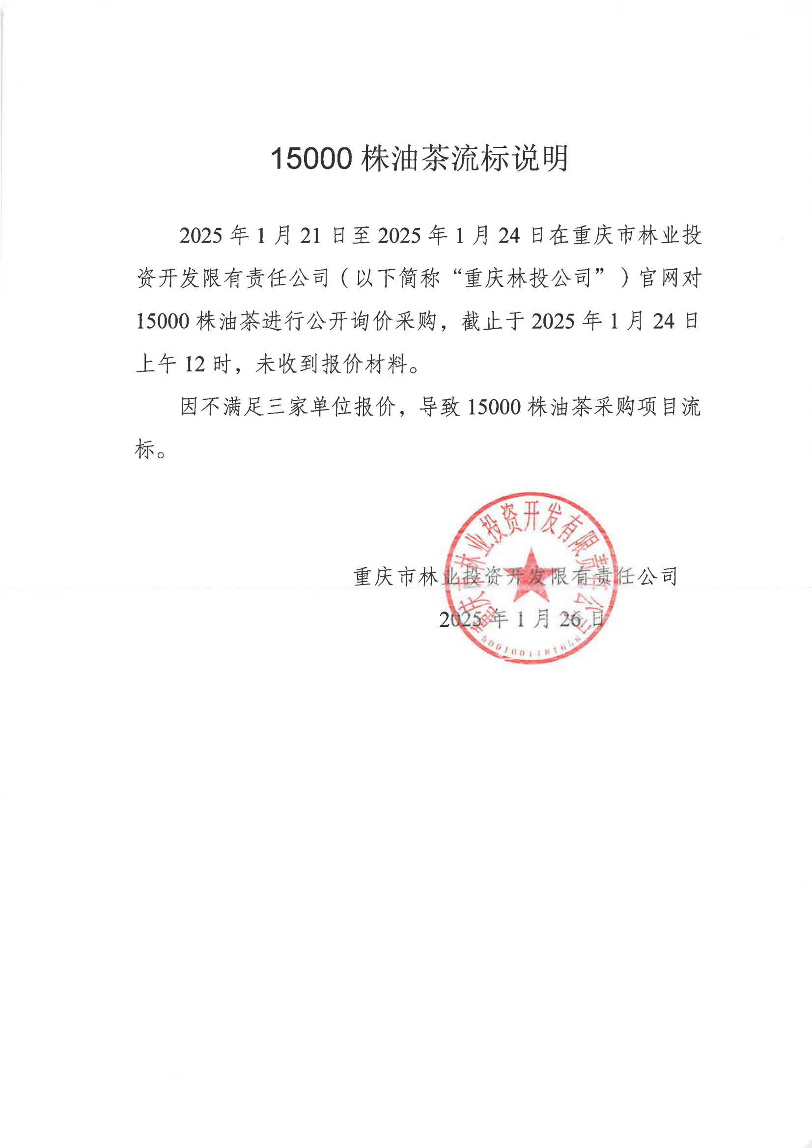 重庆林投苗木采购类15000株油茶采购项目流标公告