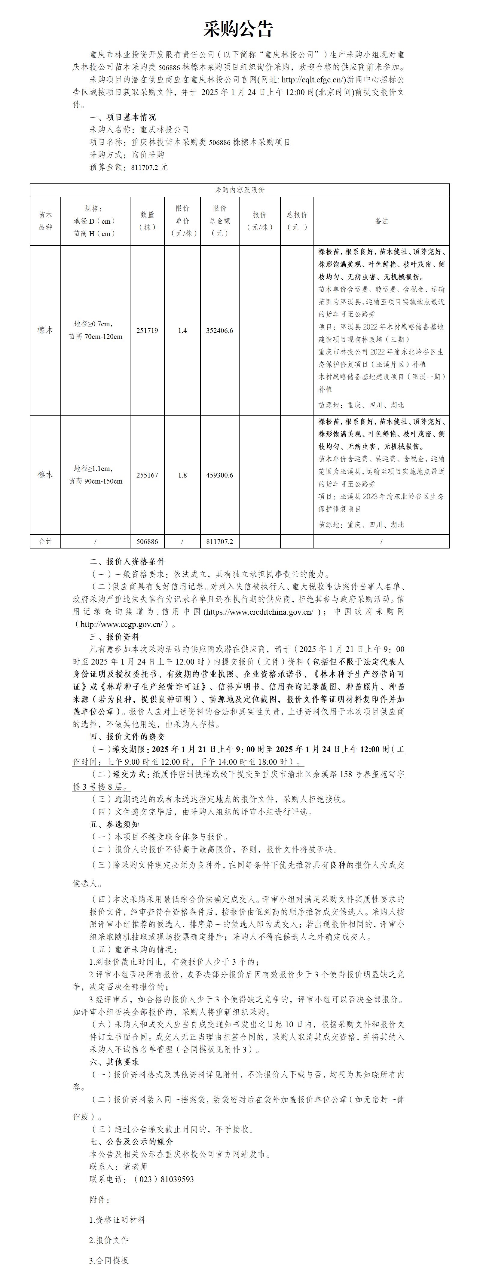 重庆林投苗木采购类506886株檫木采购项目采购公告