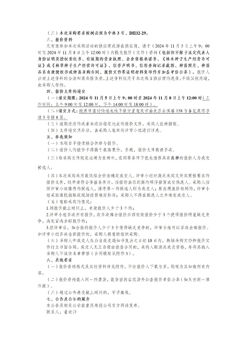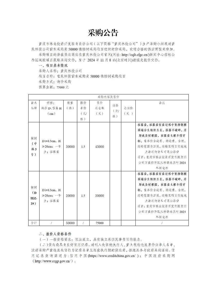 重庆林投公司苗木采购类50000株桉树采购项目采购公告