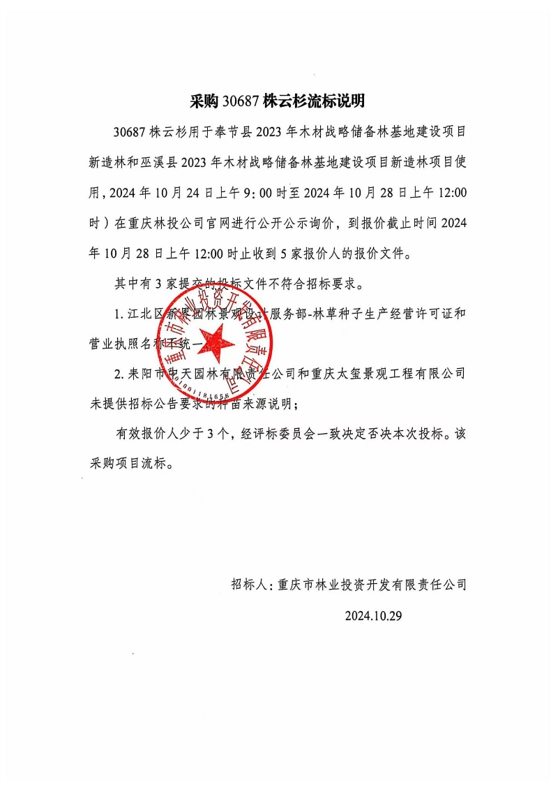采购60687株云杉流标说明