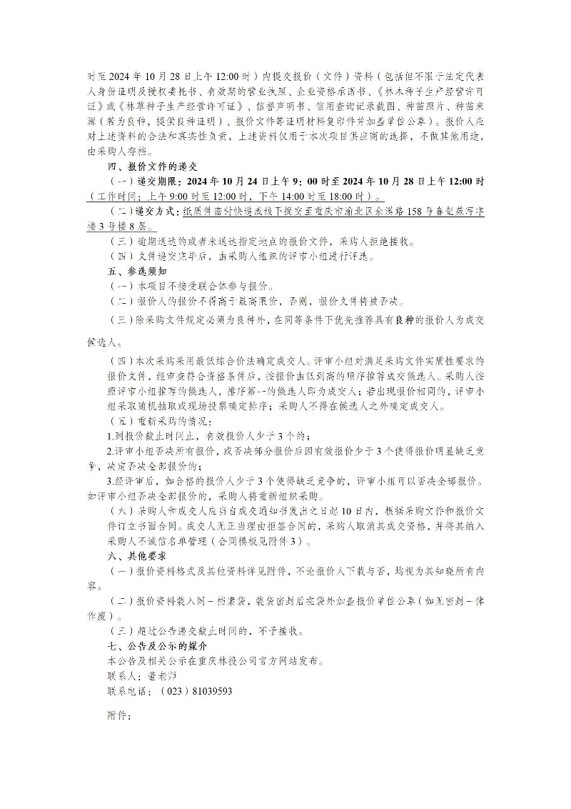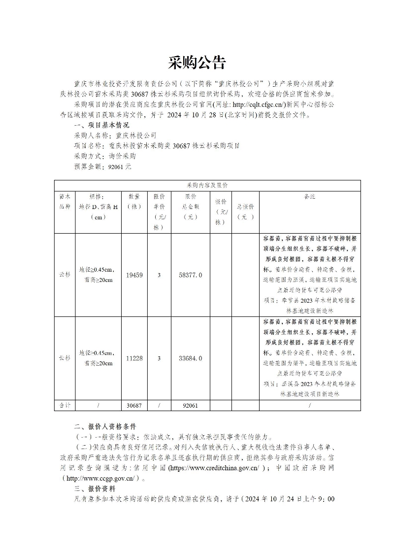 重庆林投苗木采购类30687株云杉采购项目采购公告