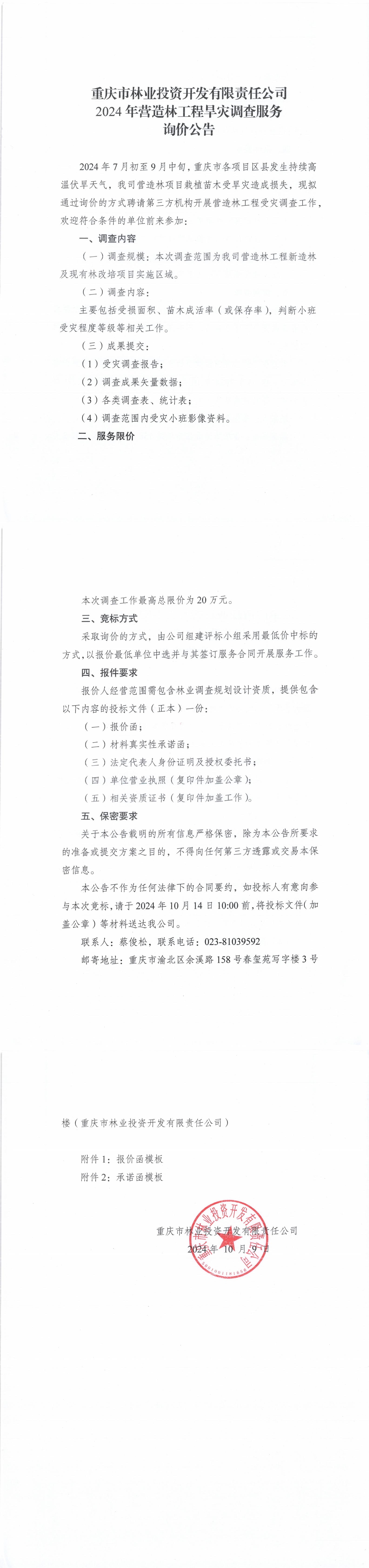 2024年营造林工程旱灾调查服务询价公告