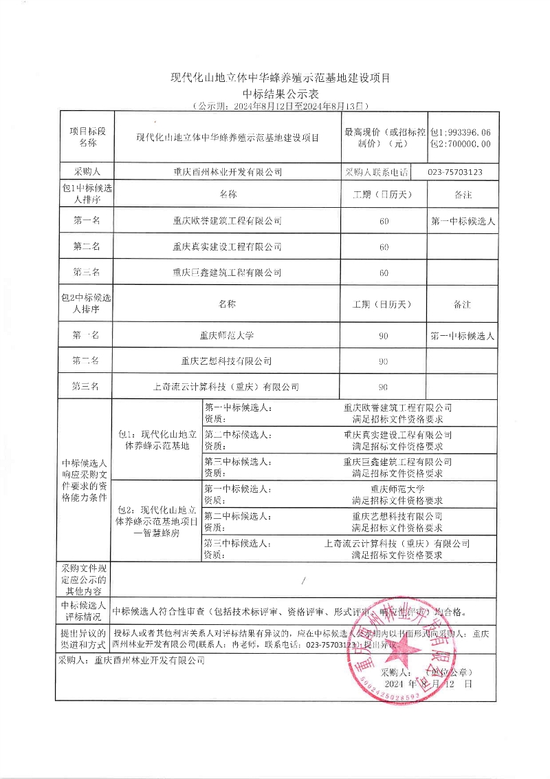现代化立体中华蜂养殖示范基地项目中标结果公示
