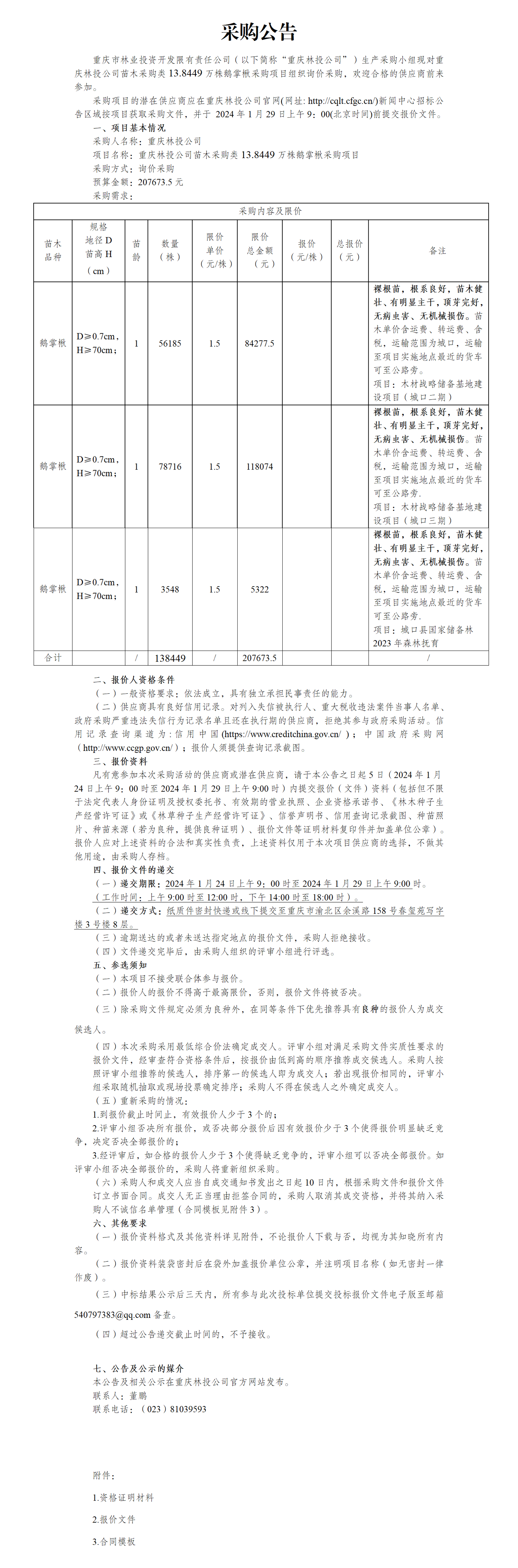 采购公告:重庆林投公司苗木采购类13.8449万株鹅掌楸采购项目