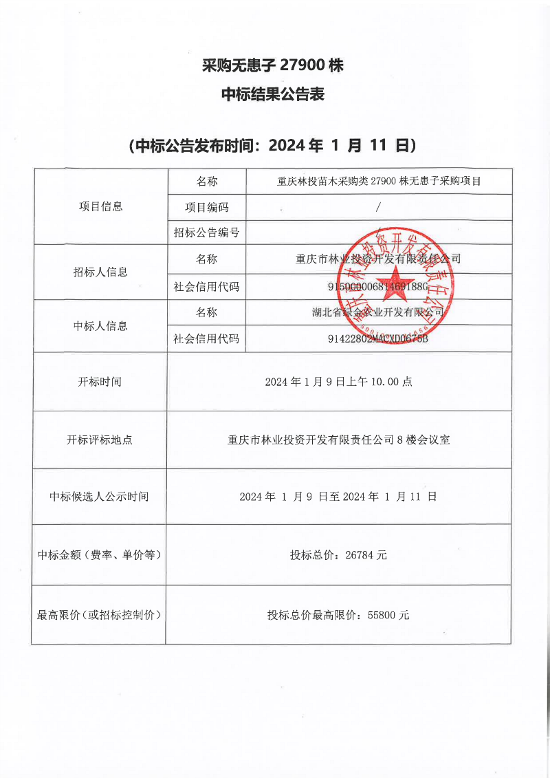 中标结果公告:重庆林投苗木采购类27900株无患子采购项目