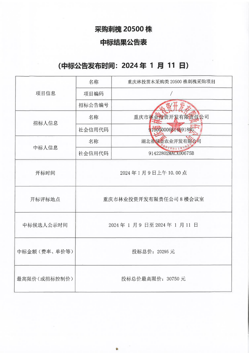 中标结果公告:重庆林投苗木采购类20500株刺槐采购项目