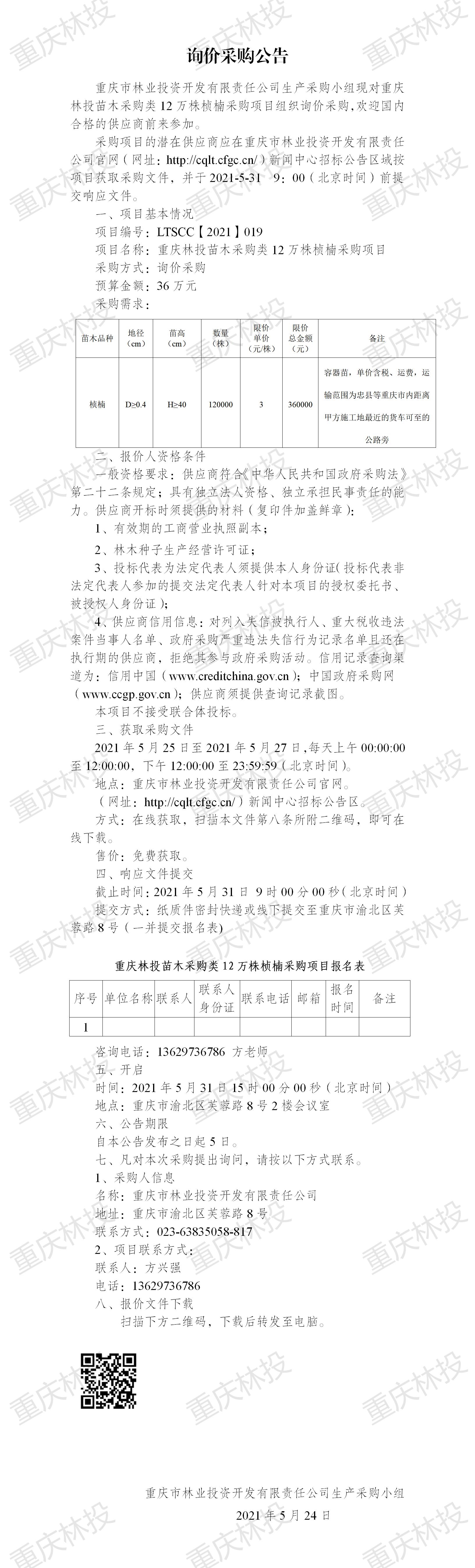 询价采购公告LTSCC【2021】019