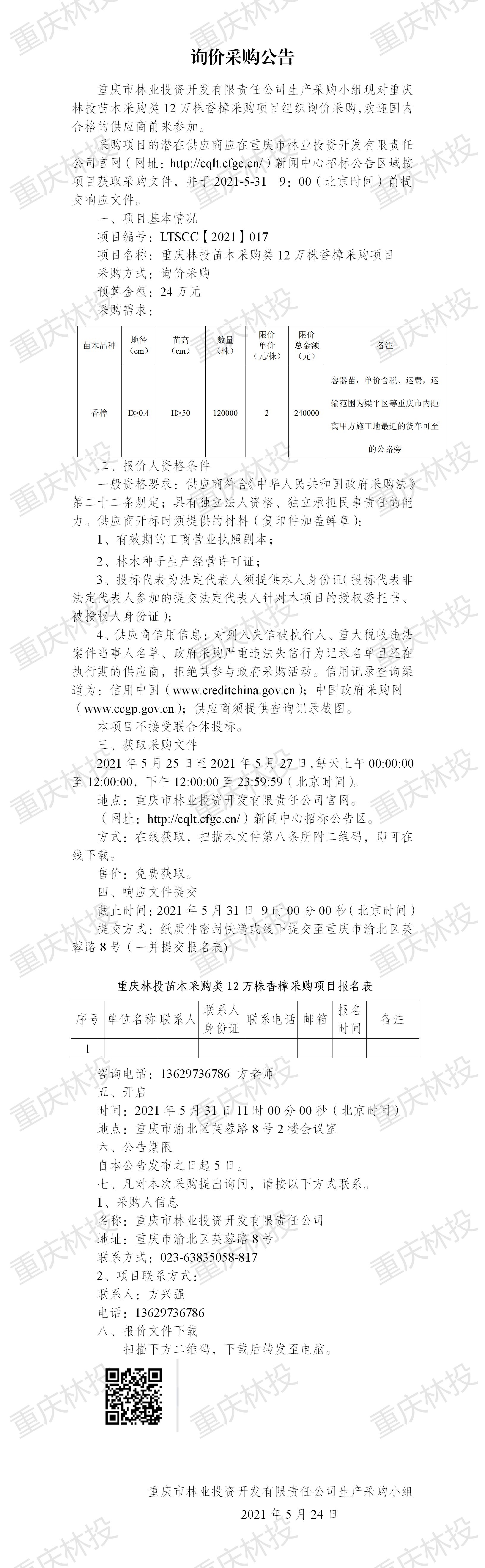 询价采购公告LTSCC【2021】017