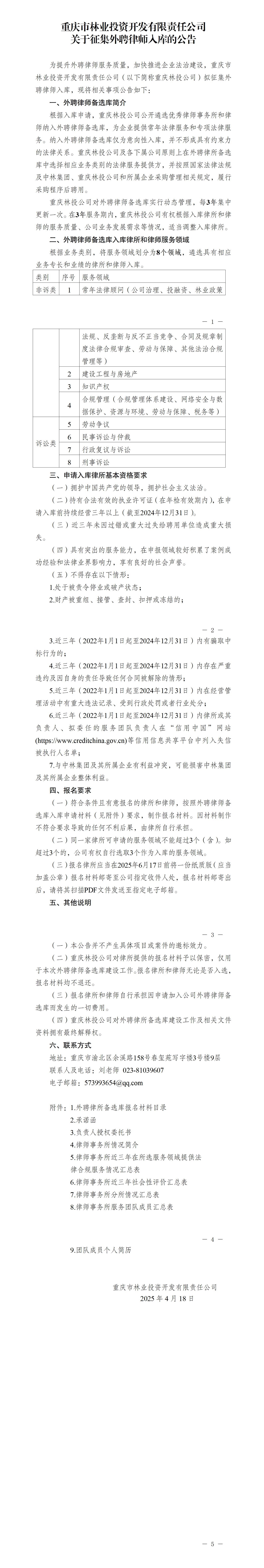 重庆市林业投资开发有限责任公司关于征集外聘律师入库的公告