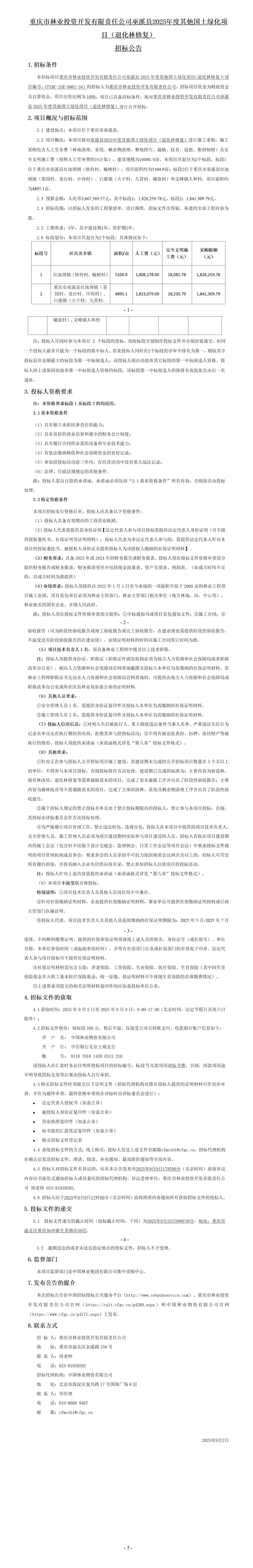重庆市林业投资开发有限责任公司巫溪县2025年度其他国土绿化项目(退化林修复) 招标公告