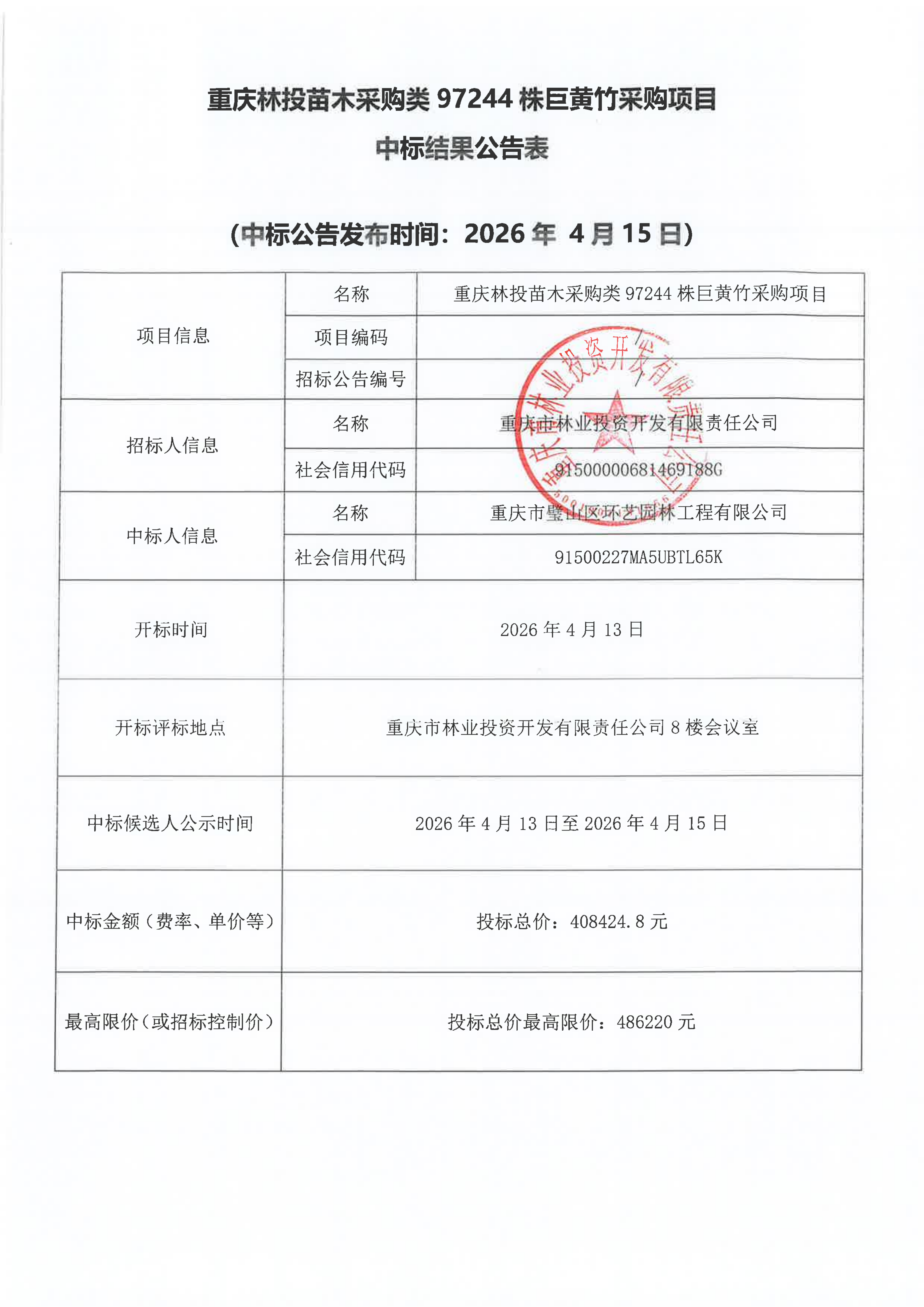 中标结果公告重庆林投苗木采购类97244株巨黄竹采购项目中标结果公告